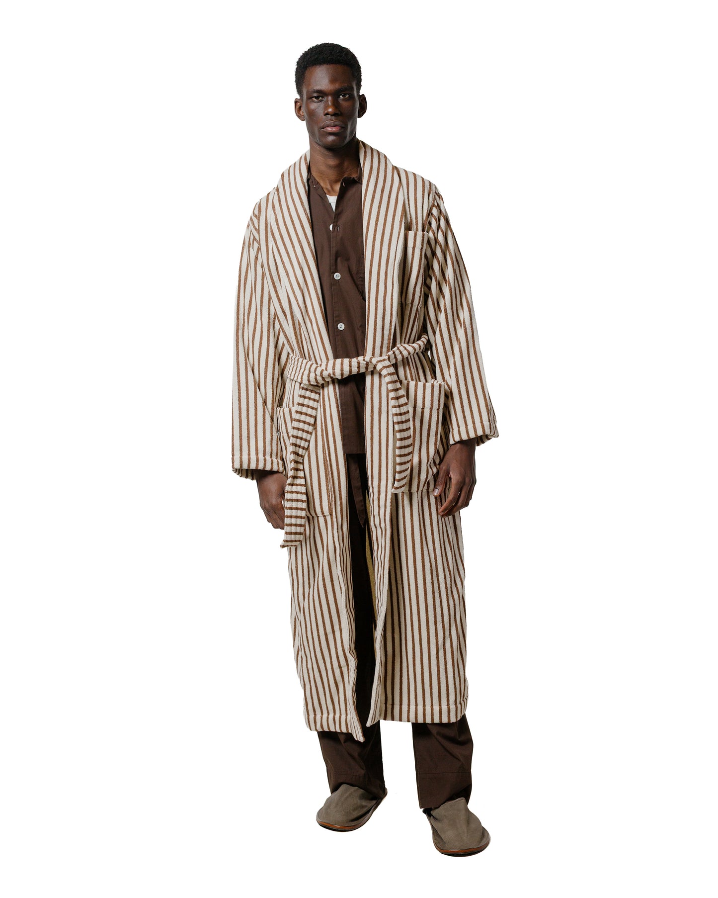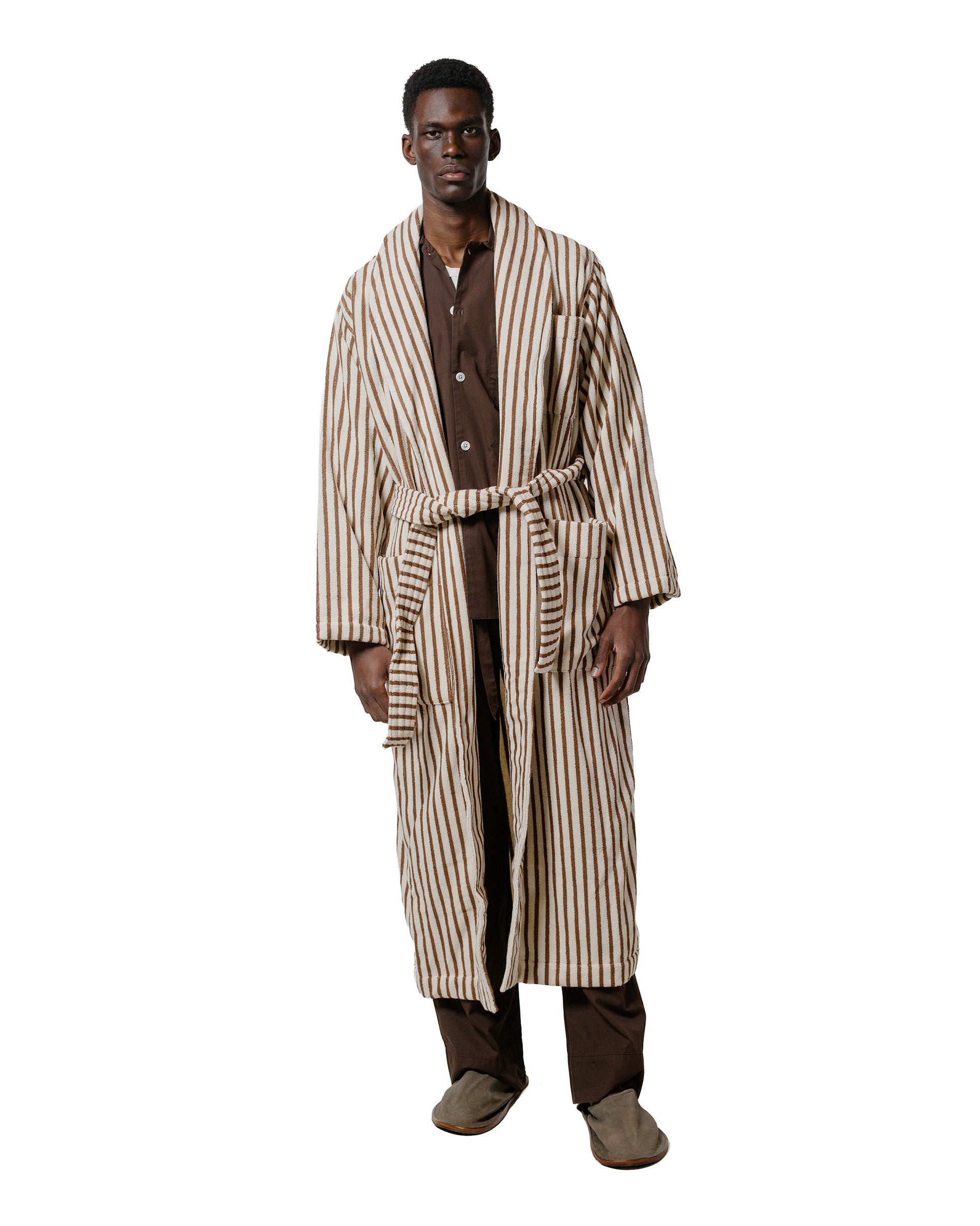 Tekla Terry Classic Bathrobe Kodiak Stripes