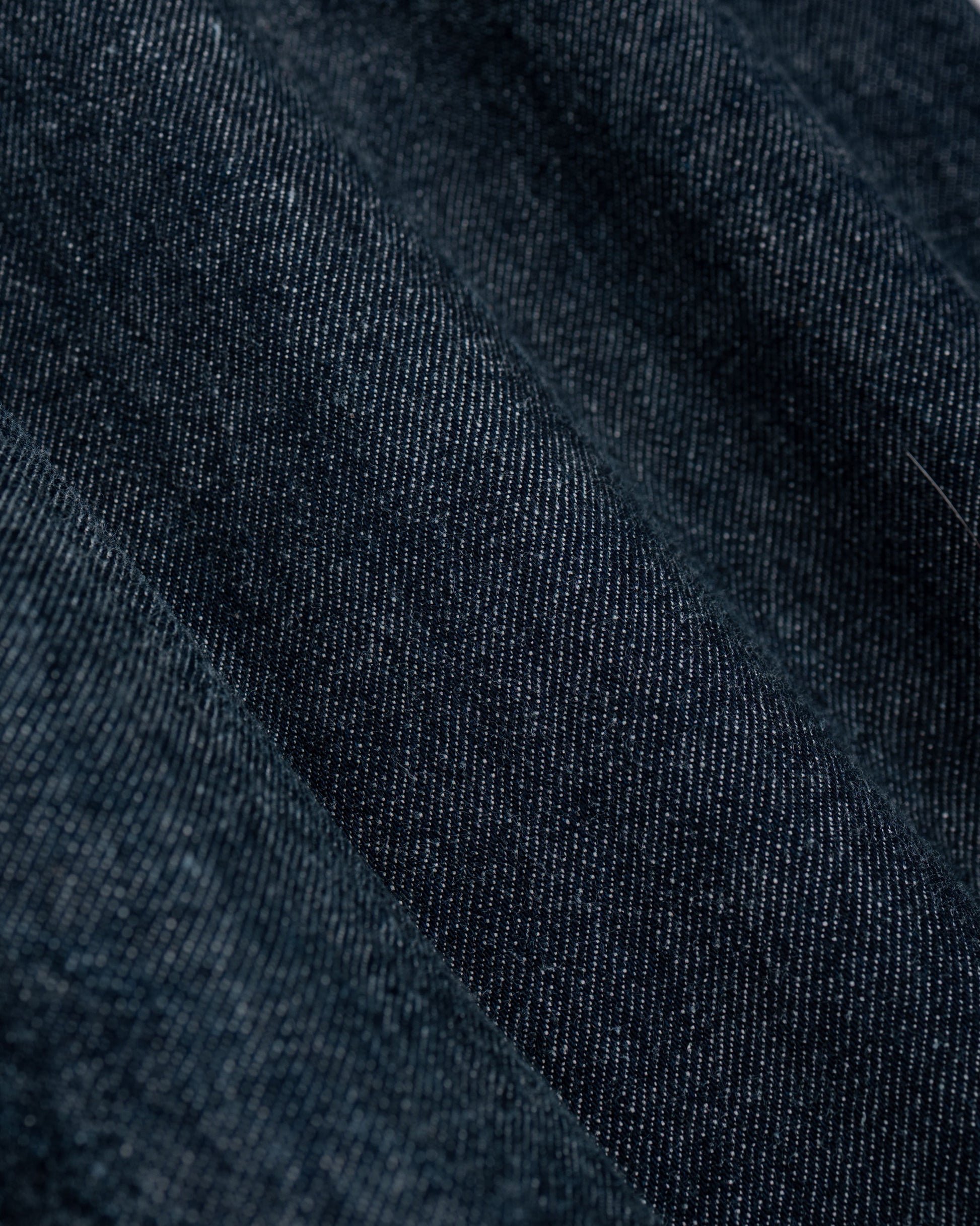 - 13oz. right-hand twill rope-dyed pure indigo raw cotton denim