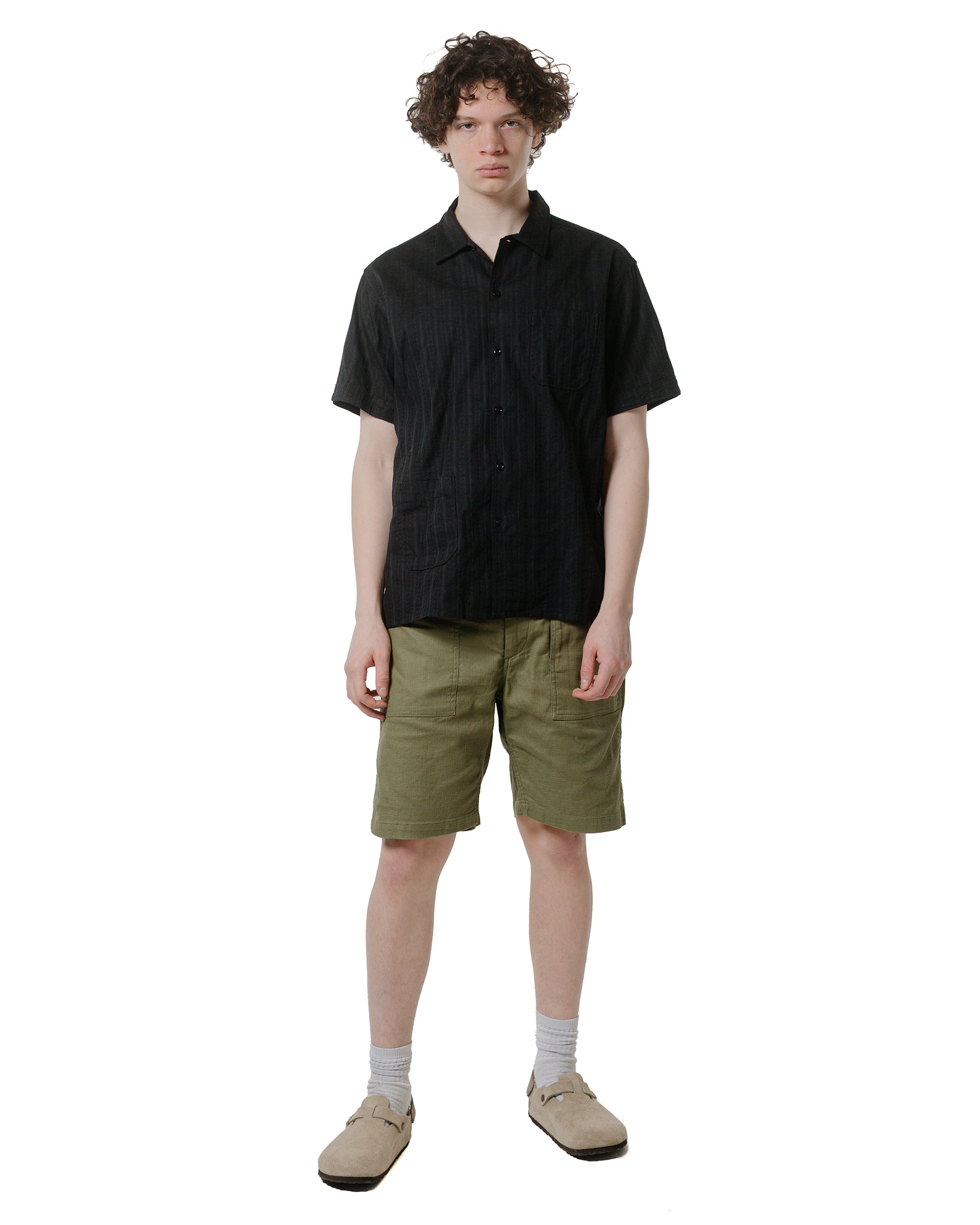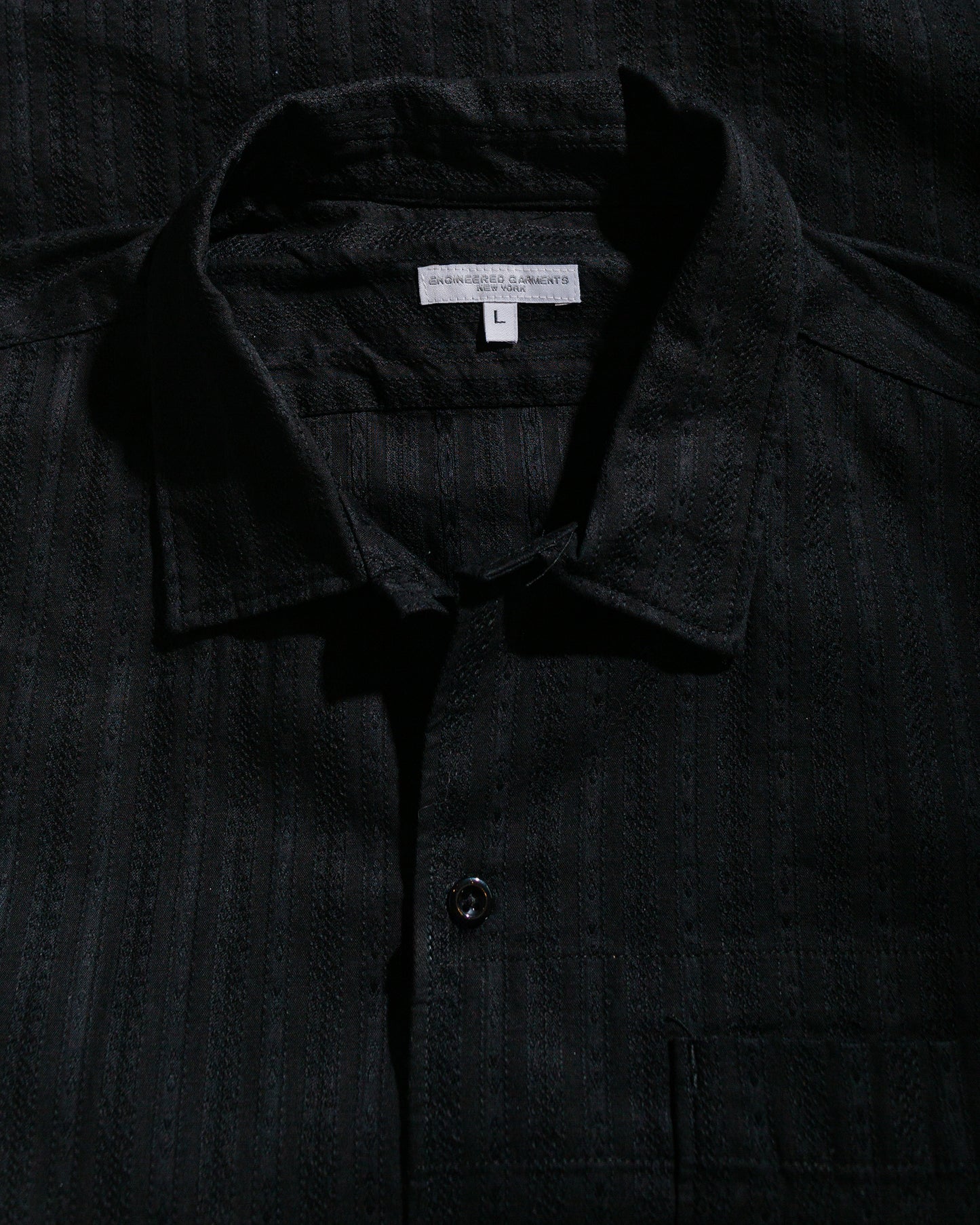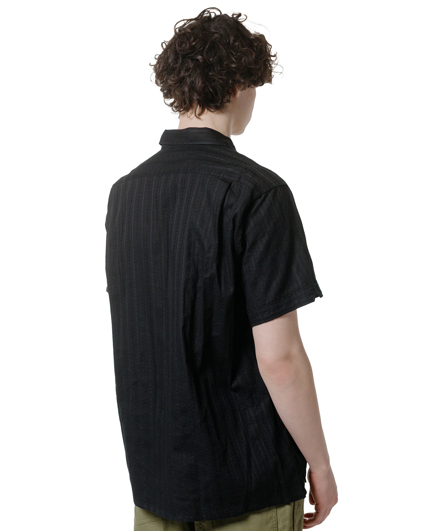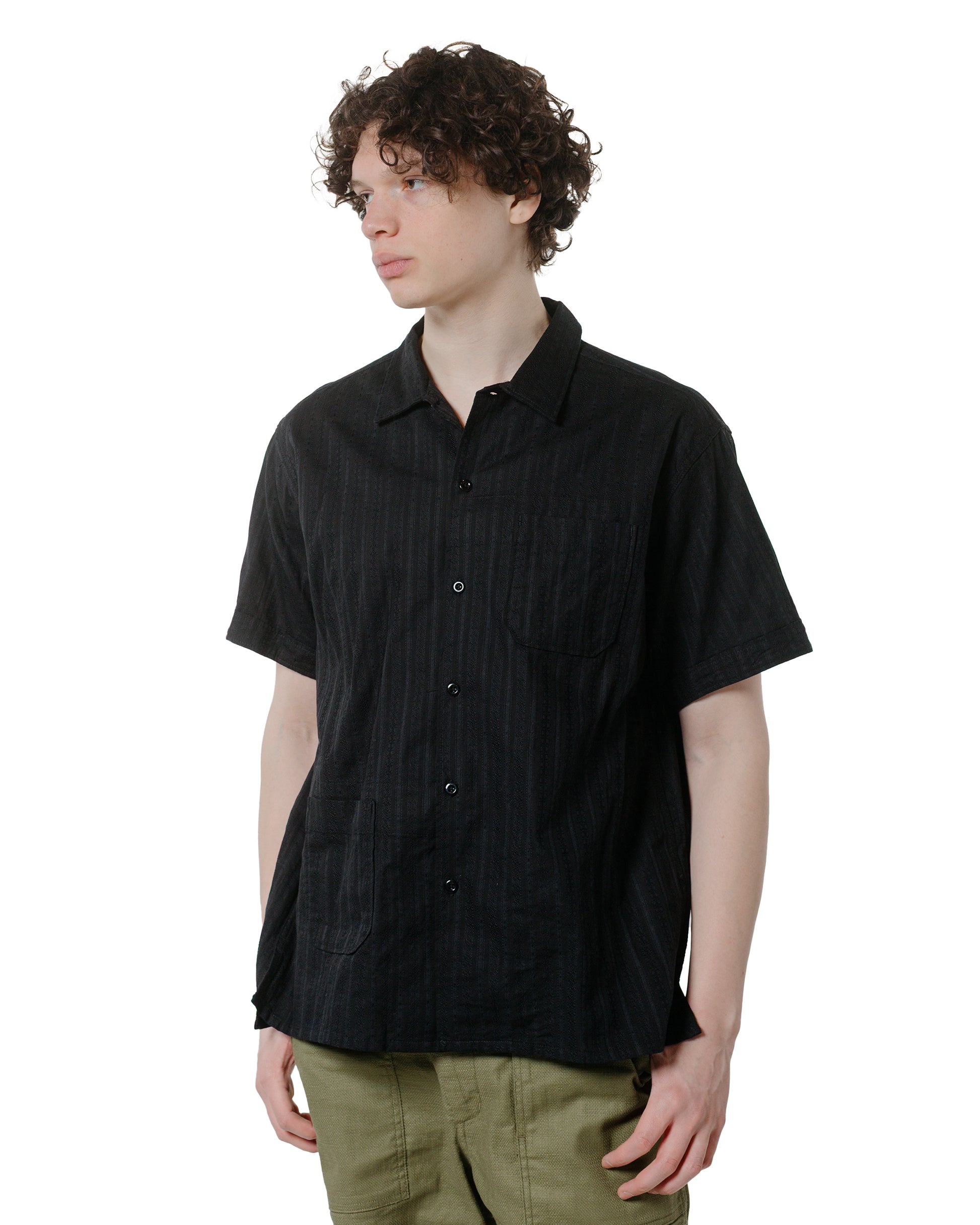 Engineered GarmentsCamp Shirt Black Cotton Lace Stripe Jacquard