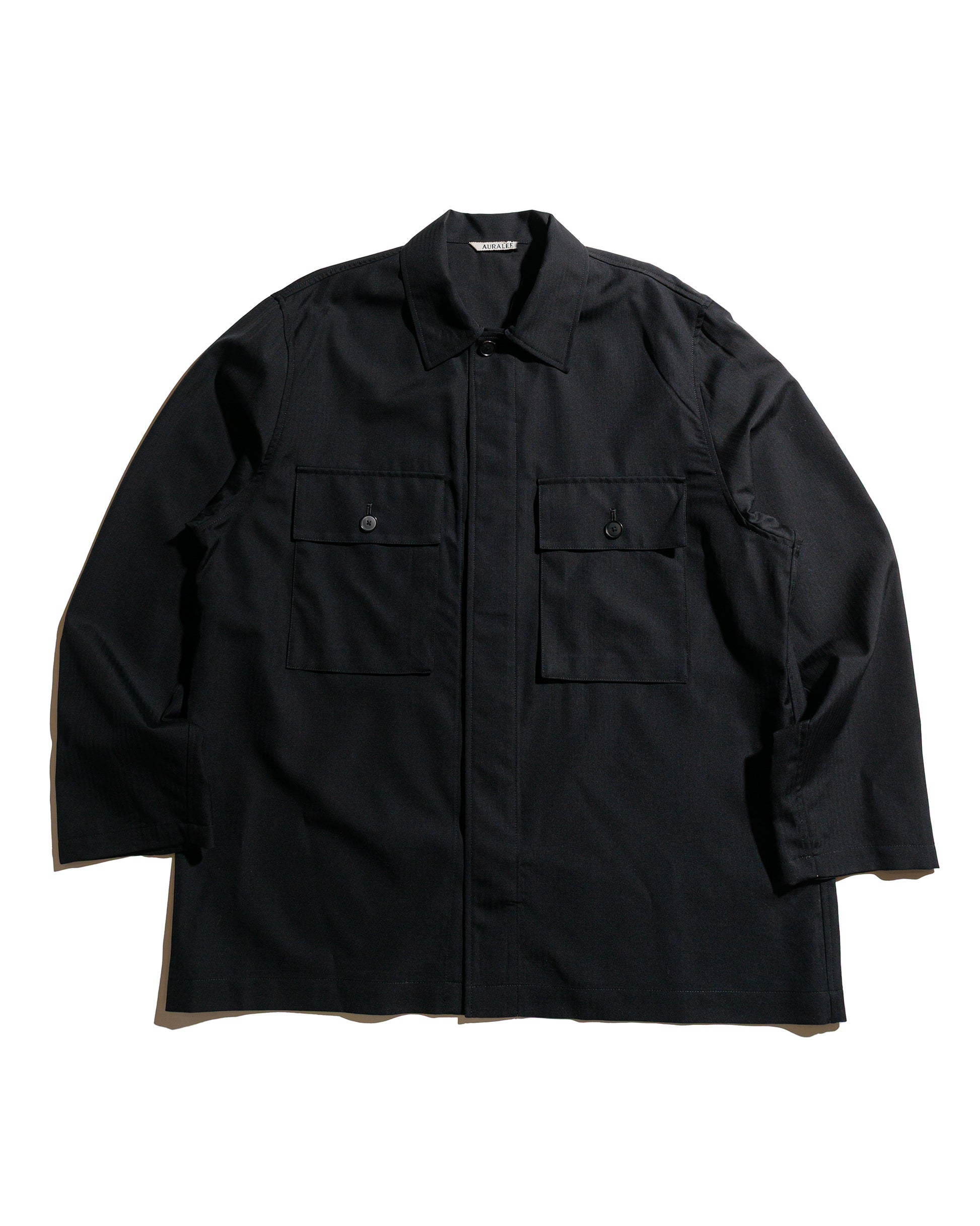 AuraleeWool Herringbone Over Shirt Black