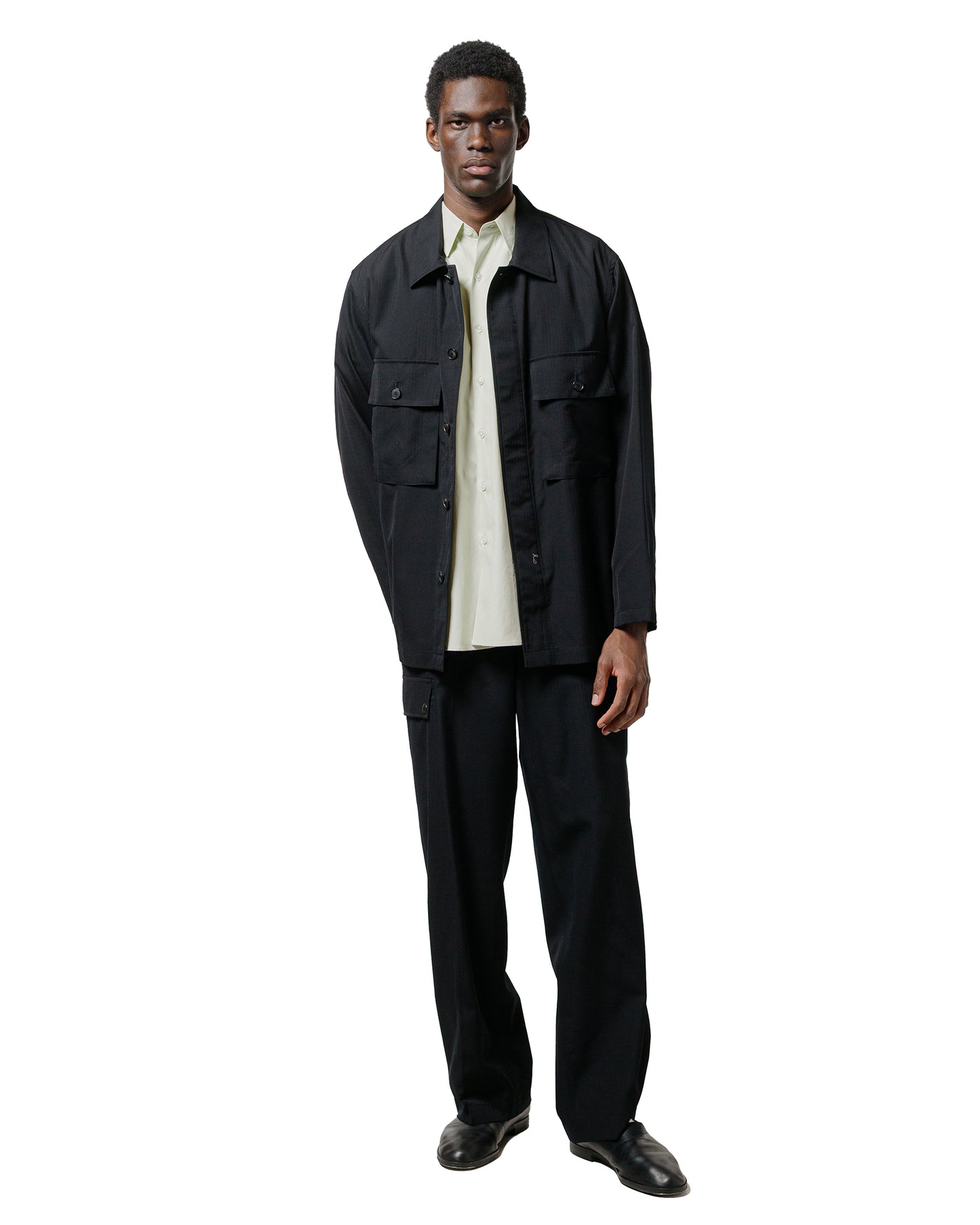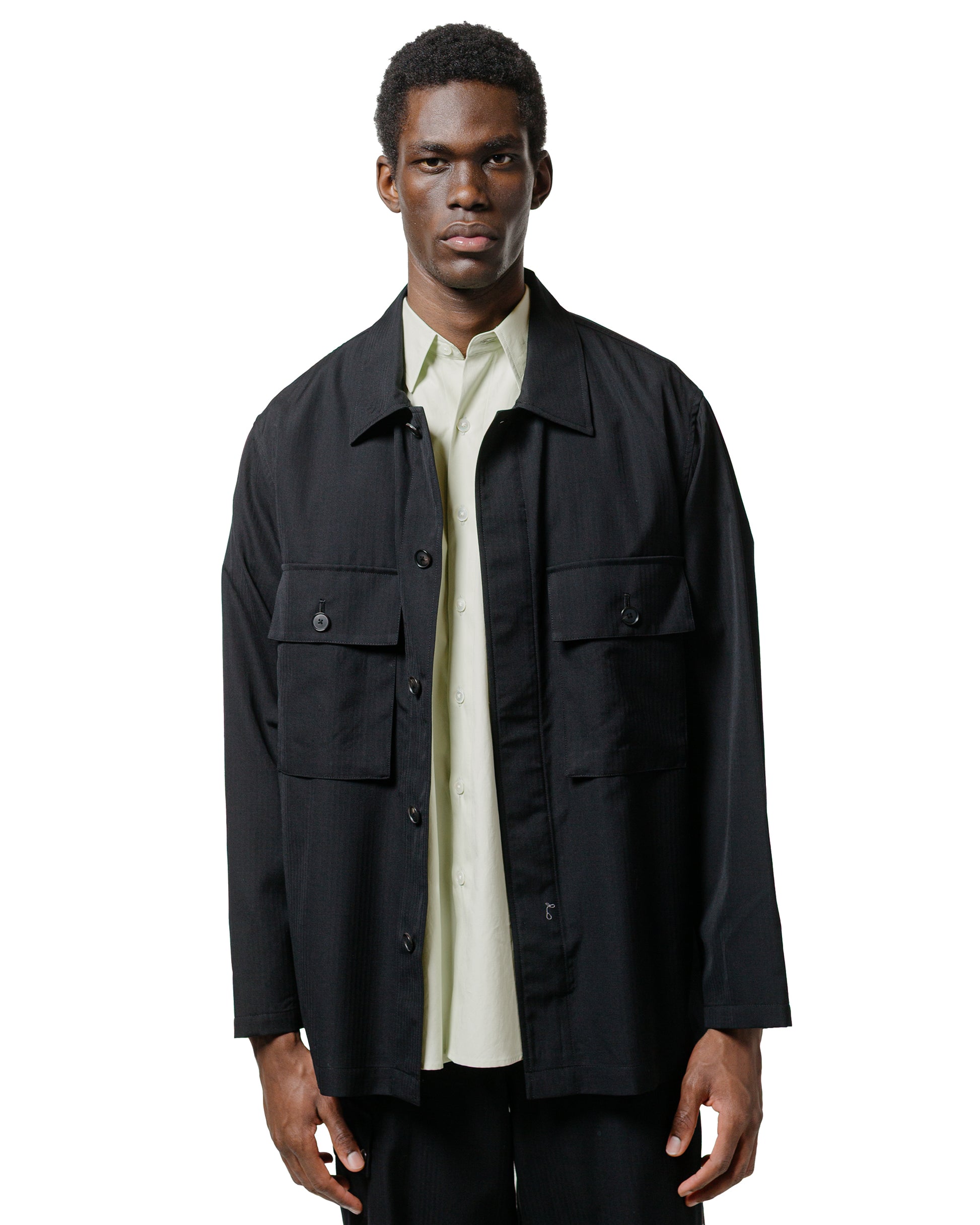 Wool Herringbone Over Shirt Black