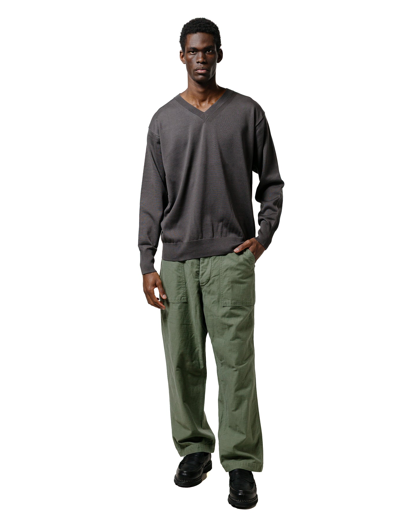 BatonerThe Sea Island Cotton V Neck Dark Gray