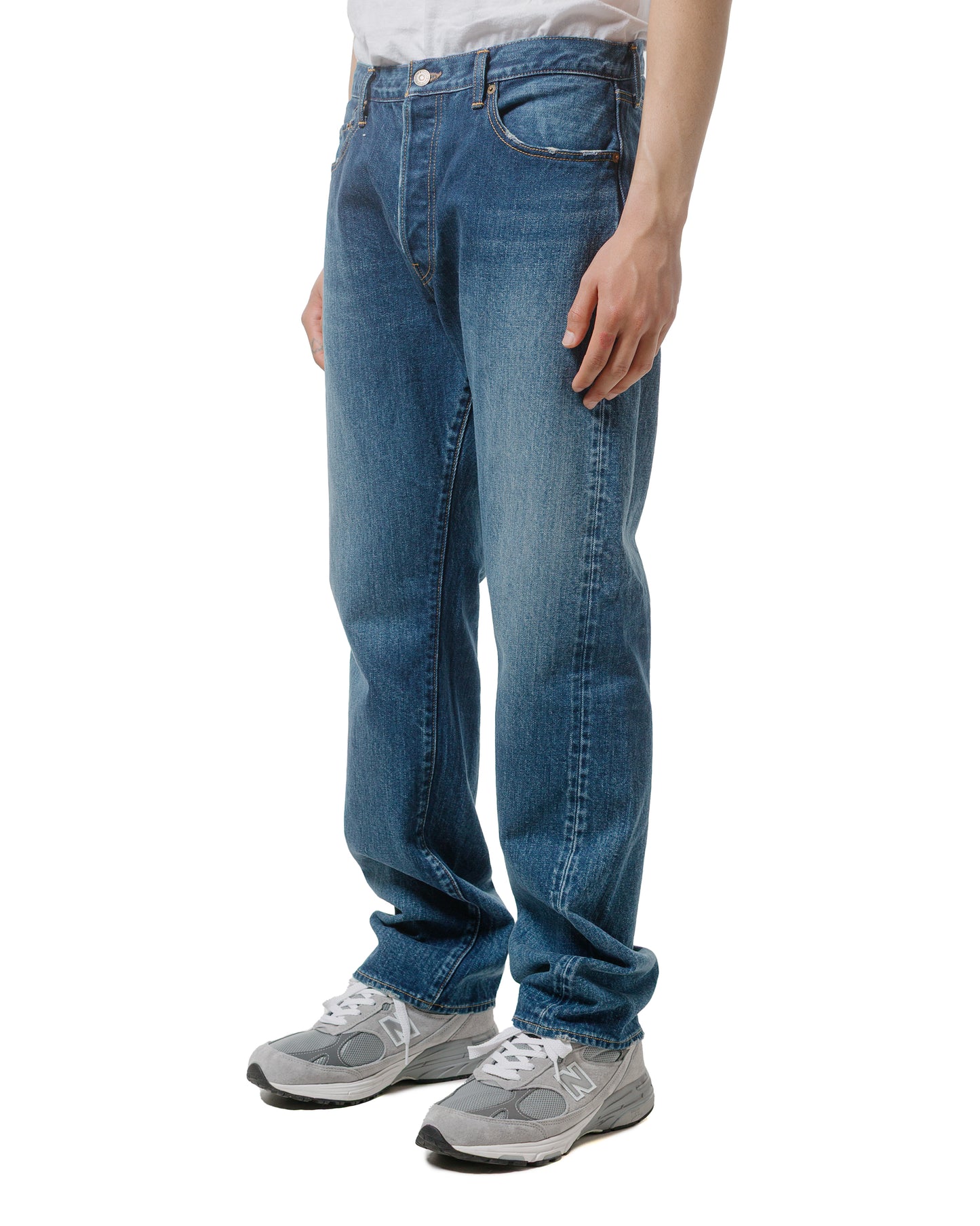 Straight 5 Pocket Pants (Real Indigo) Medium Dark Blue Damage