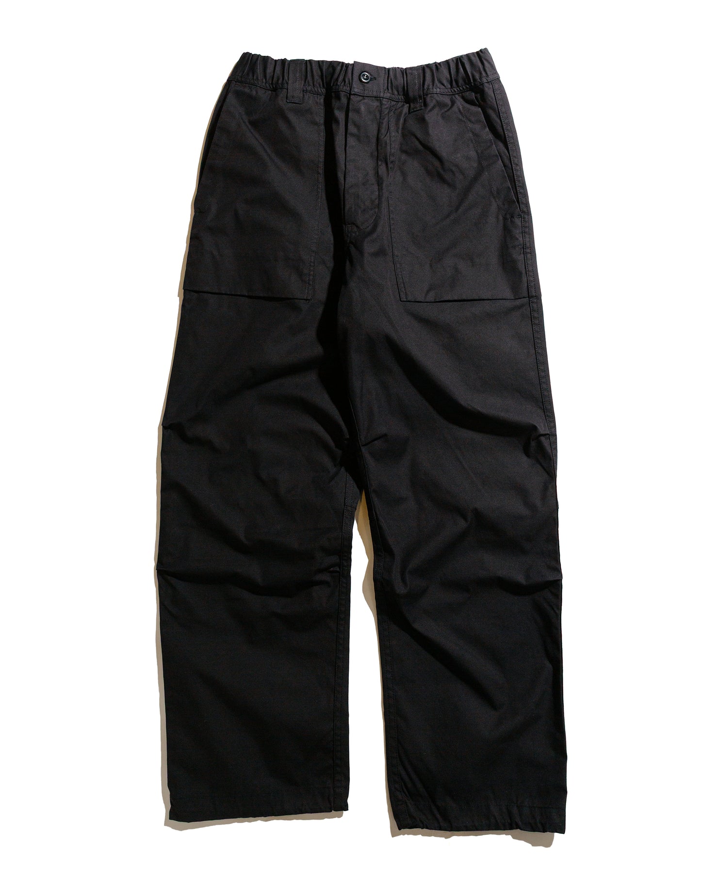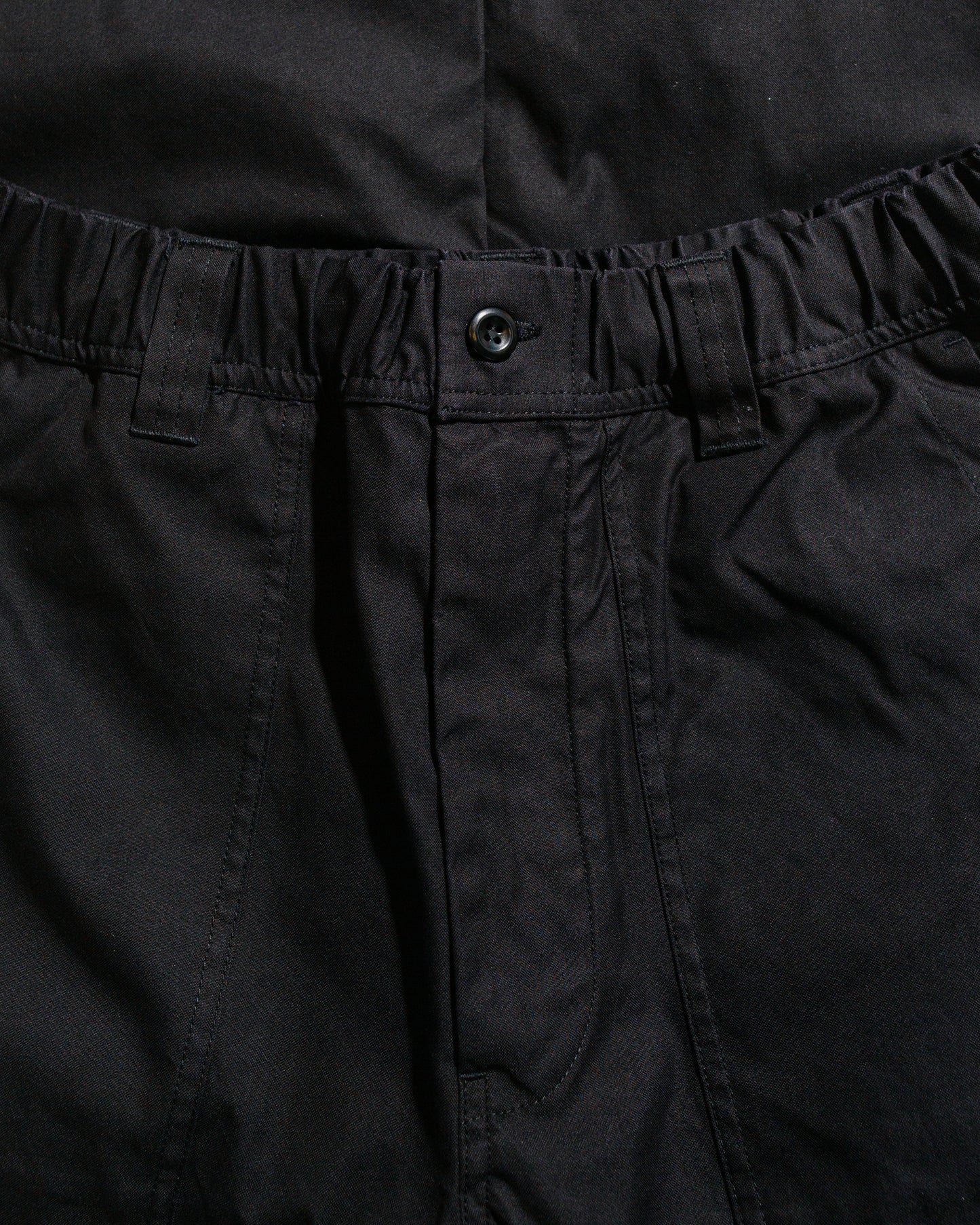 - Elasticated waistband with button closure & zip fly