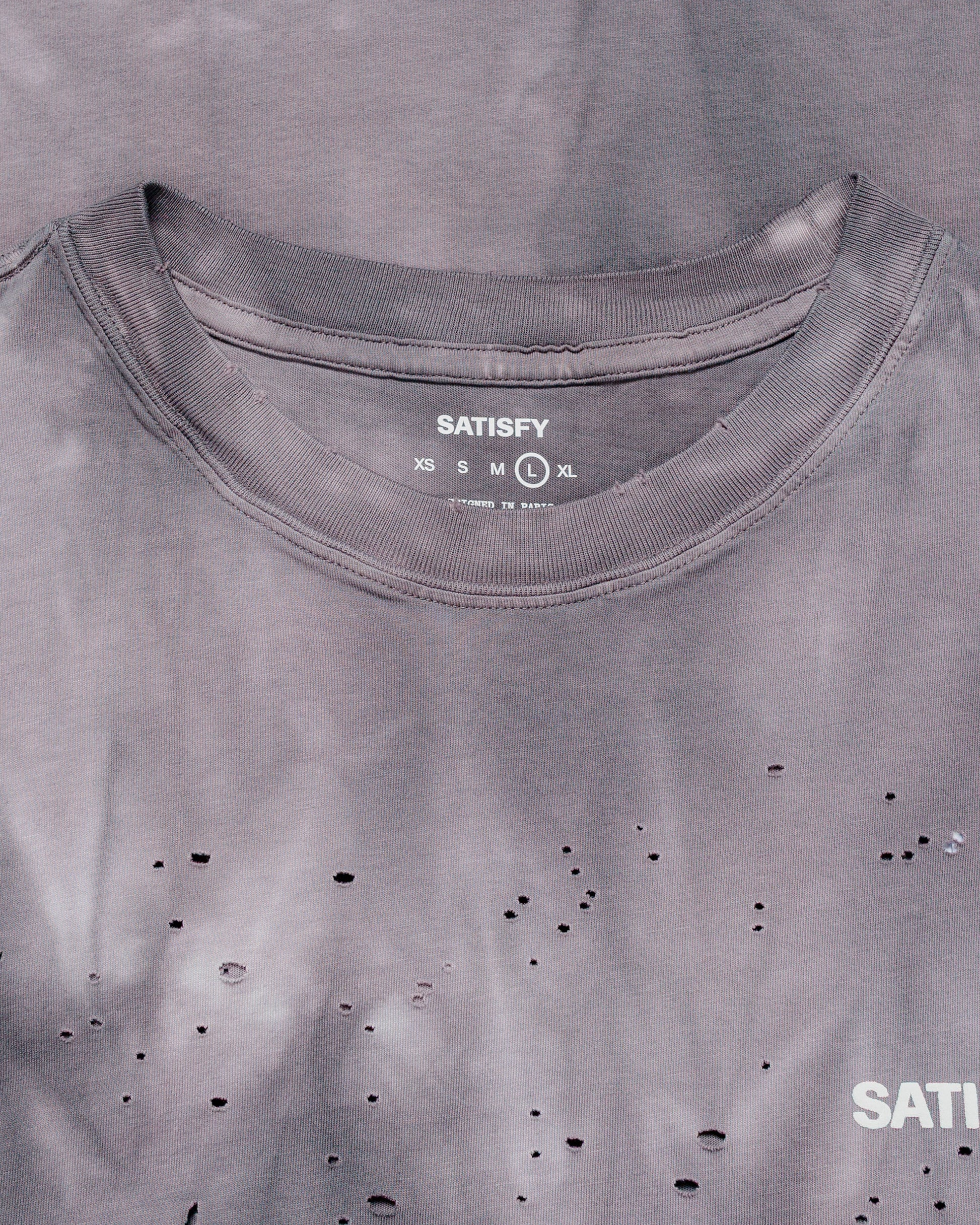 The name itself is kind of funny. The dreaded moth. No one has time for that, instead Satisfy made the perfect holes for you and PURELY for ventilation purposes. Not only is this shirt good to run in, but it is also very useful when hungover. Just ask Brandon from UP THERE this is a man who has experienced both.
