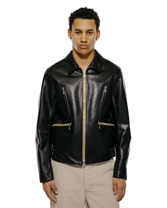 - Cowhide leather detailing on collar & inner cuffs